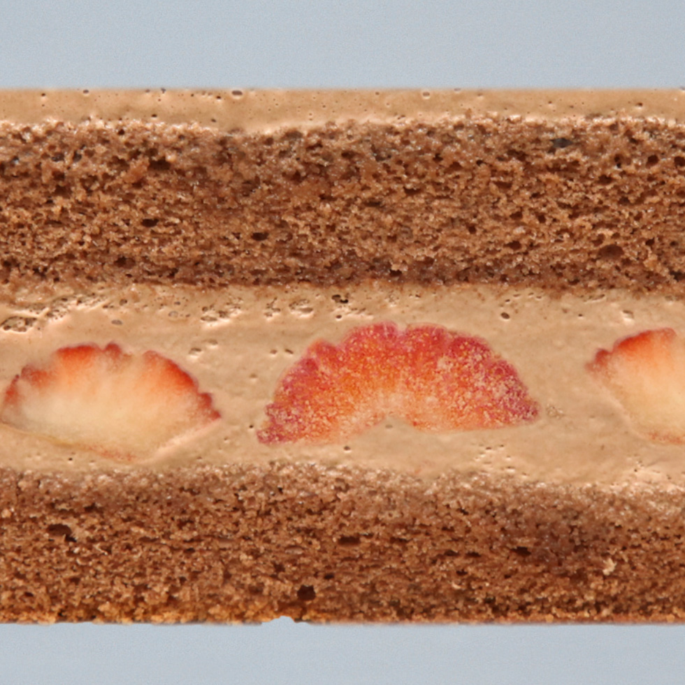 なめらかな口溶けのショコラクリームは、ショコラ好きの方におすすめ。苺サンドで仕上げました。※写真は5号サイズ※ロウソク小5本付き
